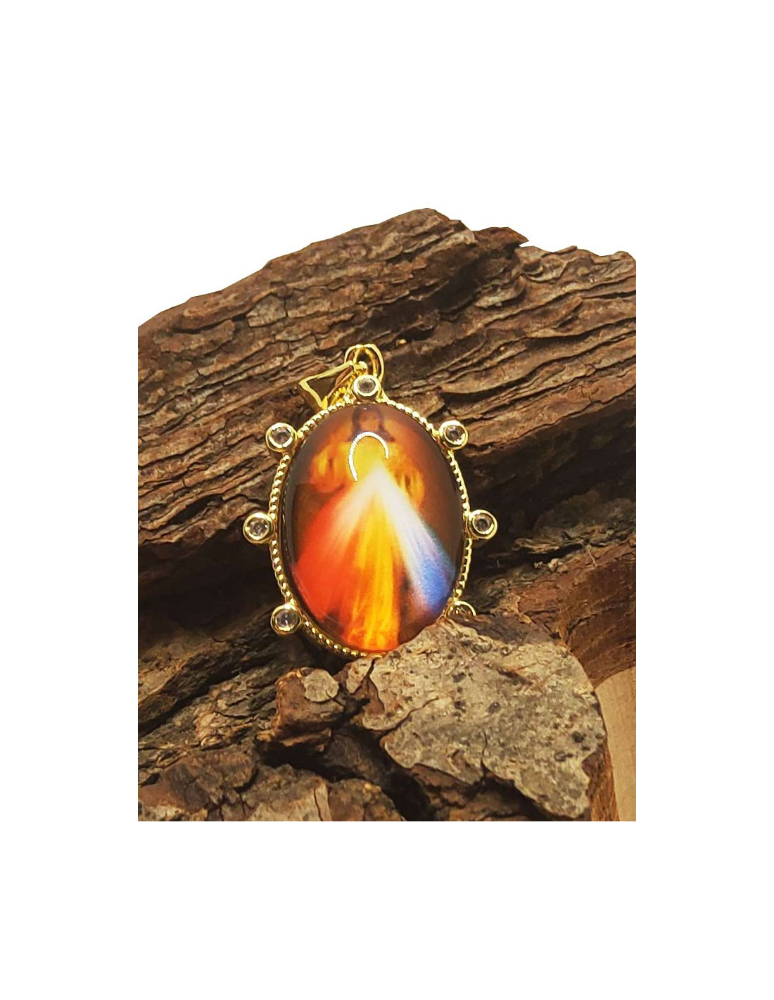 Medalla de Cristo Misericordioso - Metal dorado y strass