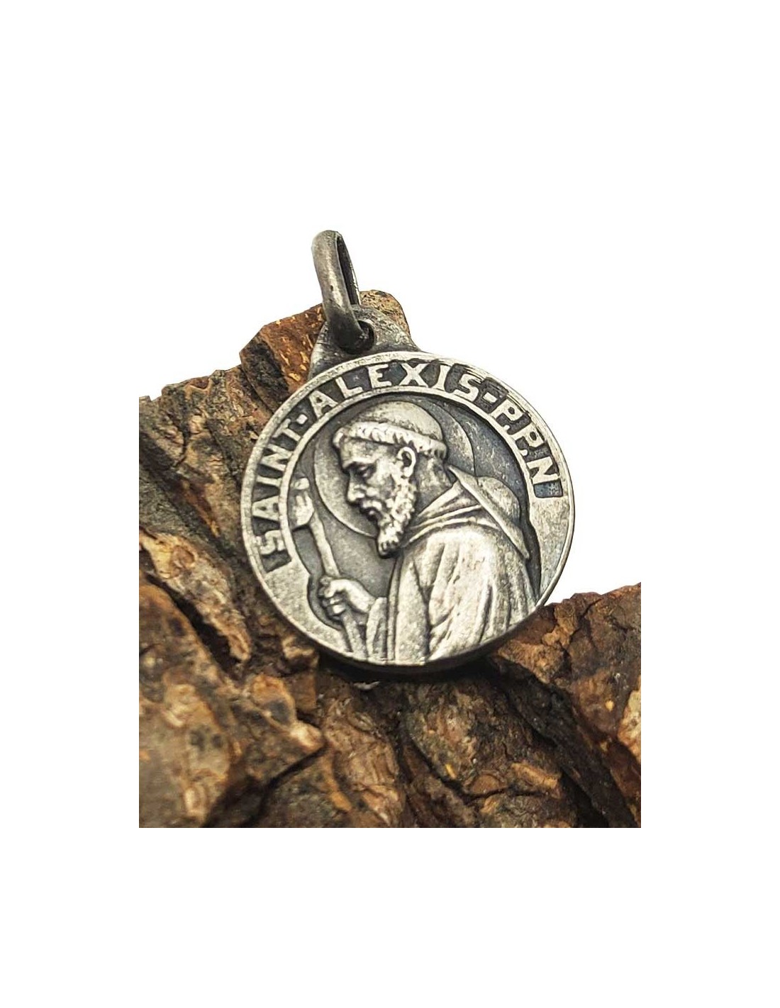 Medalla de San Alexis de Roma, o Alexis de Edesa, conocido como el Hombre de Dios. Santo cristiano fallecido en 412, celebrado el 17 de febrero por la Iglesia ortodoxa y el 17 de julio por la Iglesia católica. Es el patrón de los mendigos, los peregrinos, los viajeros, los fabricantes de cinturones y las enfermeras.