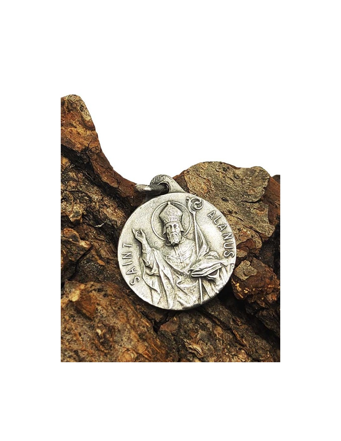 Medalla de San Alain de Quimper. La medalla es de plata, finamente esculpida en estilo vintage. La existencia de San Alain es incierta, pero forma parte de los santos bretones más o menos míticos de la Armórica, como cuarto obispo de Quimper, en Cornualles, en los siglos VI o VII.