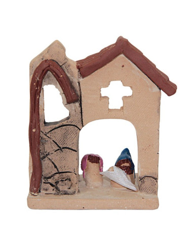 Descubra esta encantadora pequeña capilla de terracota, completamente hecha a mano, que representa a la Sagrada Familia en una escena sencilla, cálida y llena de ternura. Una pieza artesanal que aporta un toque auténtico y espiritual a su decoración.