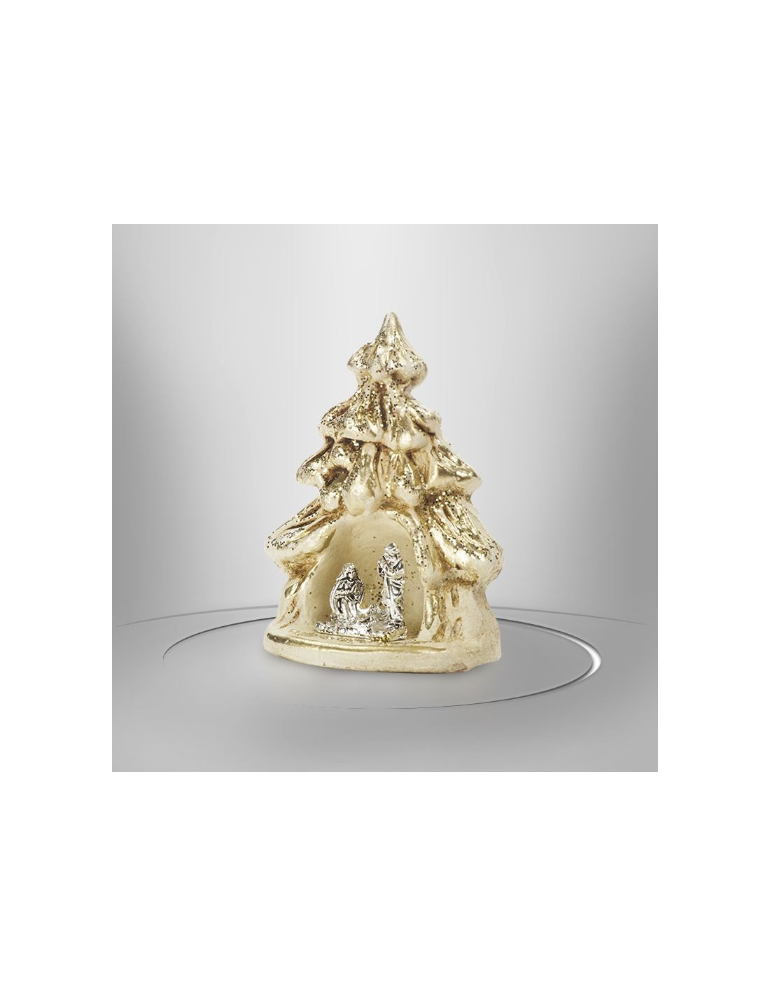Belén con forma de árbol de Navidad color crema con dorados - 7,5 cm