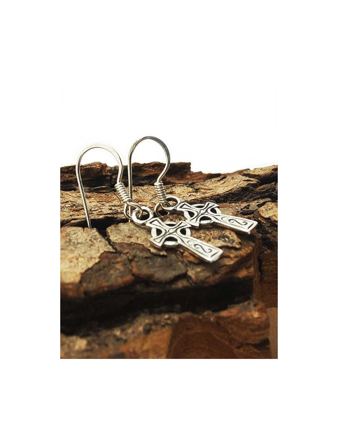 Pendientes con forma de cruz celta, en plata 925. Estos pendientes colgantes son joyas delicadas y discretas, símbolo de la fe cristiana, pero también de la herencia celta.