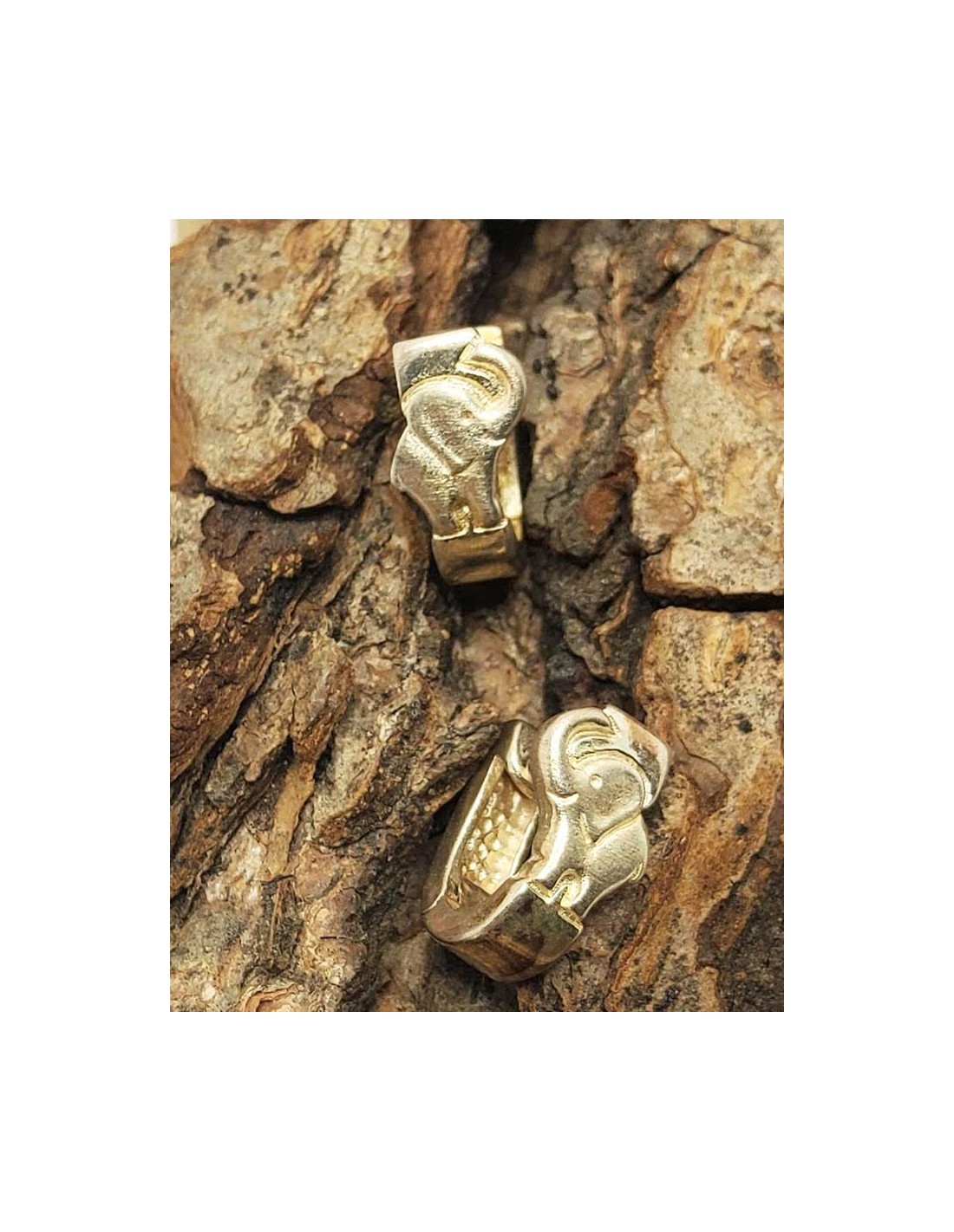 Cada aro de plata está delicadamente elaborado para lucir un elefante en miniatura en relieve.