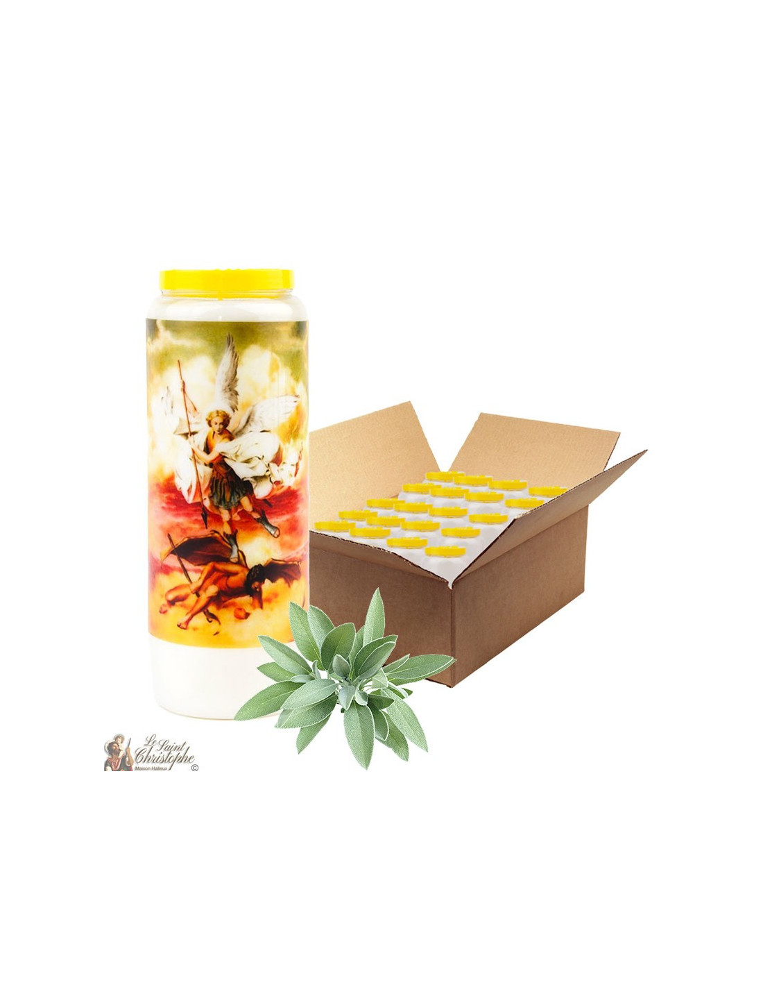 Vela de novena de salvia con salvia en San Miguel - 1 - caja 20 piezas