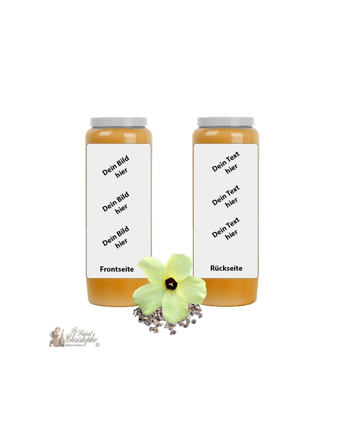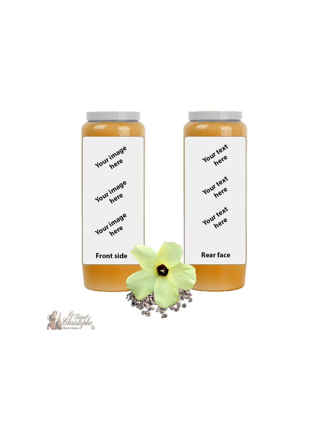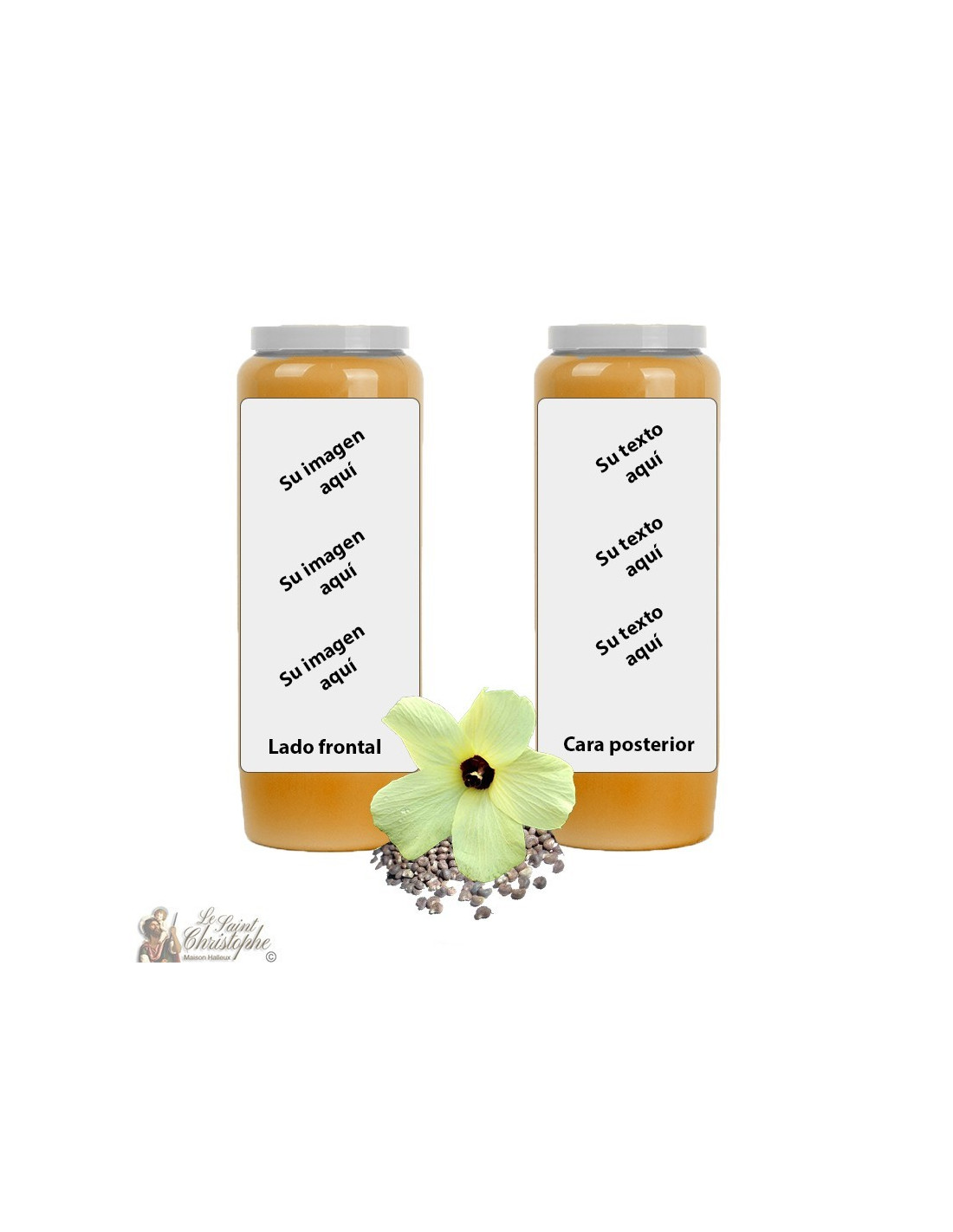 ¡Este modelo de vela puede ser personalizado con su imagen y texto!