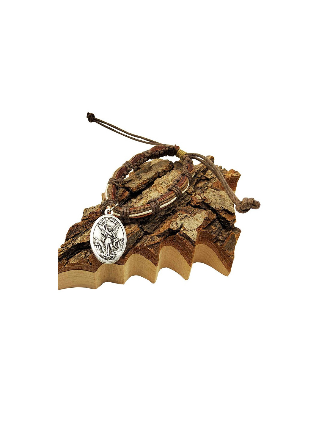 Pulsera de cuero trenzado Arcángeles San Miguel y San Rafael - marrón
