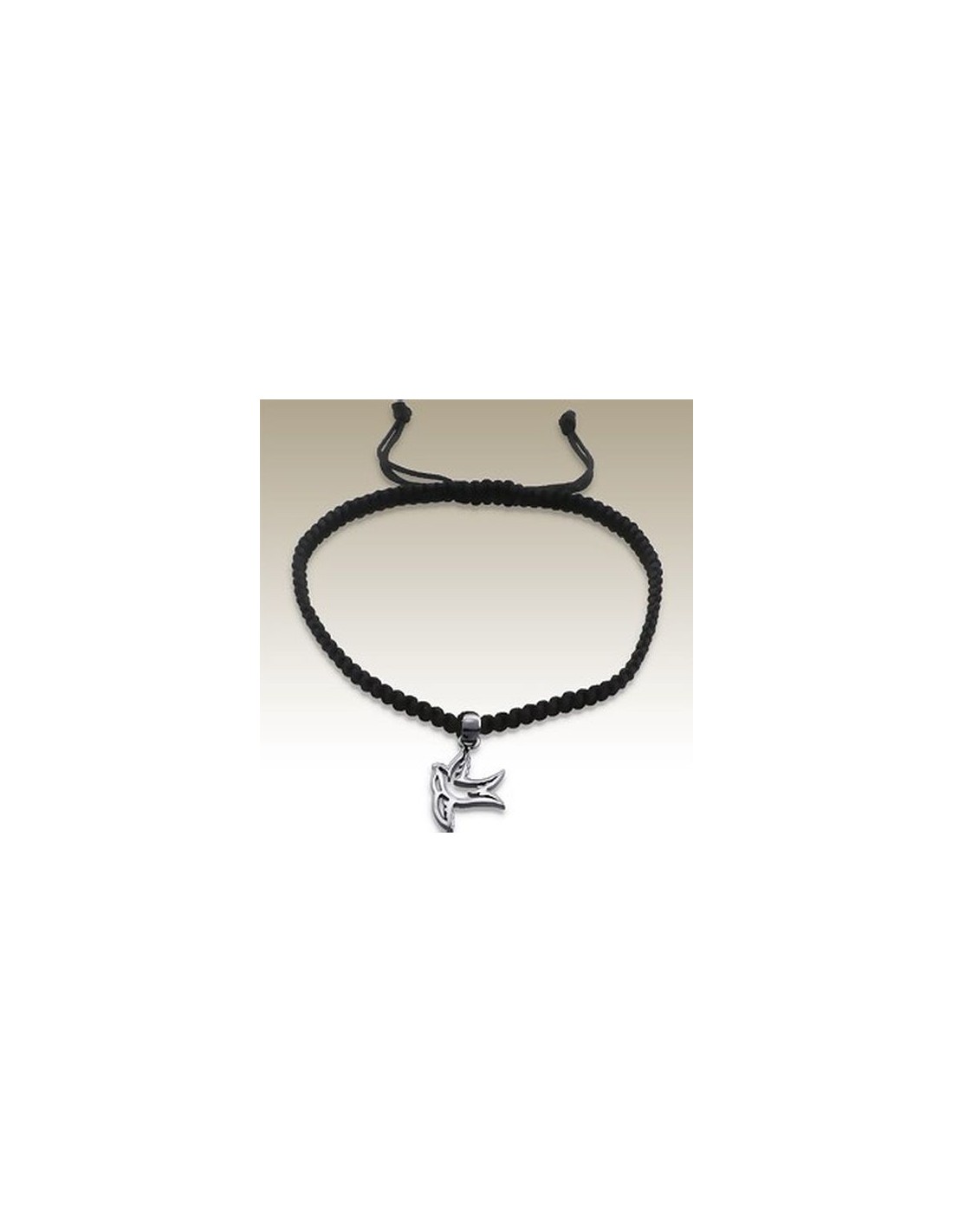 Esta pulsera de cordón negro trenzado es una joya hecha a mano. Está decorado con un colgante en forma de paloma estilizada muy decorativa. La paloma, en plata auténtica 925, es un símbolo de paz. La pulsera es de tamaño ajustable.