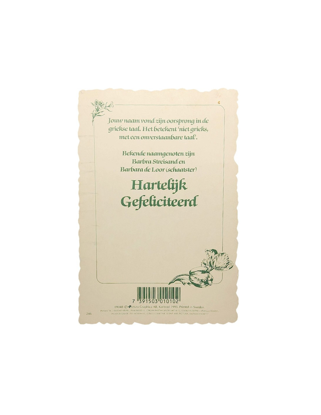 Esta postal personalizada presenta un nombre de pila, su significado etimológico y algunos personajes famosos que lo llevan. Impresa en cartulina de alta calidad con un elegante troquelado, está adornada con un colorido marco floral de estilo vintage. Perfecto como regalo sencillo y original para un cumpleaños, un bautizo o un mensaje simbólico. Una forma estupenda de hacer un guiño a la identidad de un ser querido.
