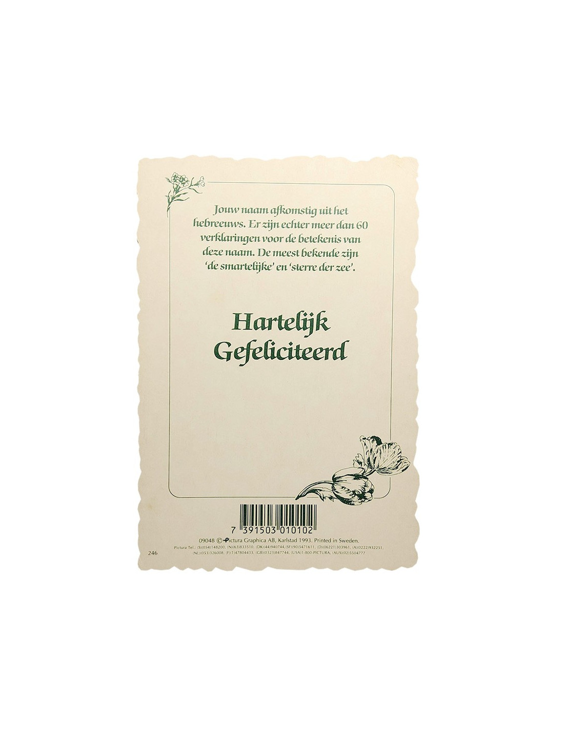 Esta postal personalizada presenta un nombre de pila, su significado etimológico y algunos personajes famosos que lo llevan. Impresa en cartulina de alta calidad con un elegante troquelado, está adornada con un colorido marco floral de estilo vintage. Perfecto como regalo sencillo y original para un cumpleaños, un bautizo o un mensaje simbólico. Una forma estupenda de hacer un guiño a la identidad de un ser querido.