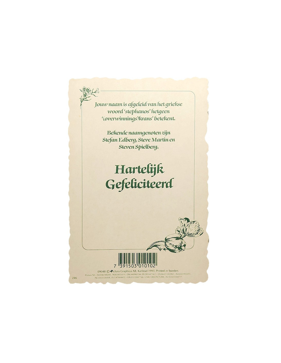 Esta postal personalizada presenta un nombre de pila, su significado etimológico y algunos personajes famosos que lo llevan. Impresa en cartulina de alta calidad con un elegante troquelado, está adornada con un colorido marco floral de estilo vintage. Perfecto como regalo sencillo y original para un cumpleaños, un bautizo o un mensaje simbólico. Una forma estupenda de hacer un guiño a la identidad de un ser querido.