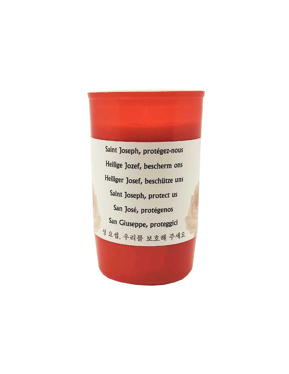 Esta vela votiva de aceite, dedicada a San José, simboliza la protección, el trabajo, la familia y la confianza.