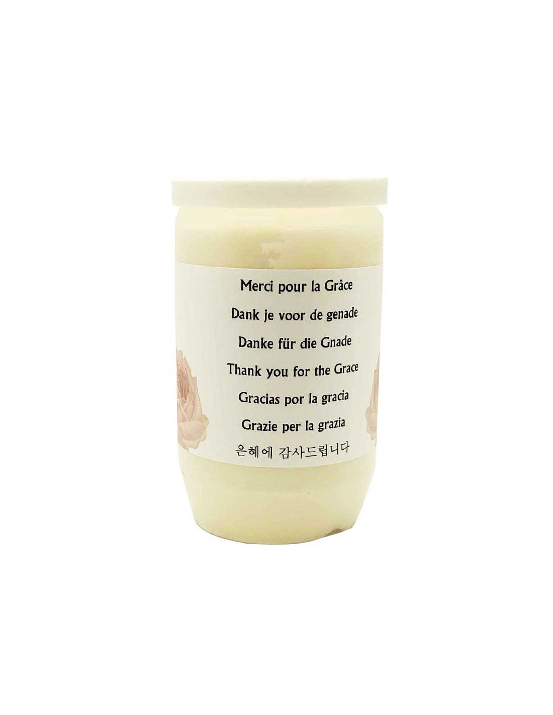 Esta vela votiva de aceite, decorada con una imagen llena de ternura y fe y la inscripción «Gracias por una Gracia», es ideal para expresar gratitud, oración y recogimiento. Simboliza el agradecimiento por las gracias recibidas y acompaña perfectamente los momentos espirituales.