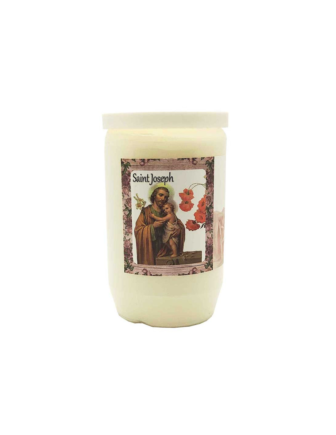 Esta vela votiva de aceite, dedicada a San José, simboliza la protección, el trabajo, la familia y la confianza.