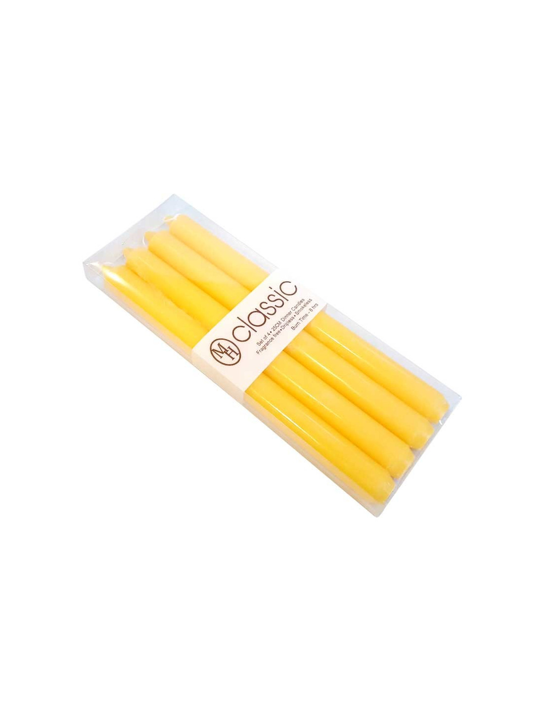 Este lote de 4 velas ligeras amarillo pollito coloreadas en la masa es perfecto para una decoración homogénea. Se pueden utilizar fácilmente para cumpleaños, comuniones, bodas, fiestas o simplemente para dar vistosidad.