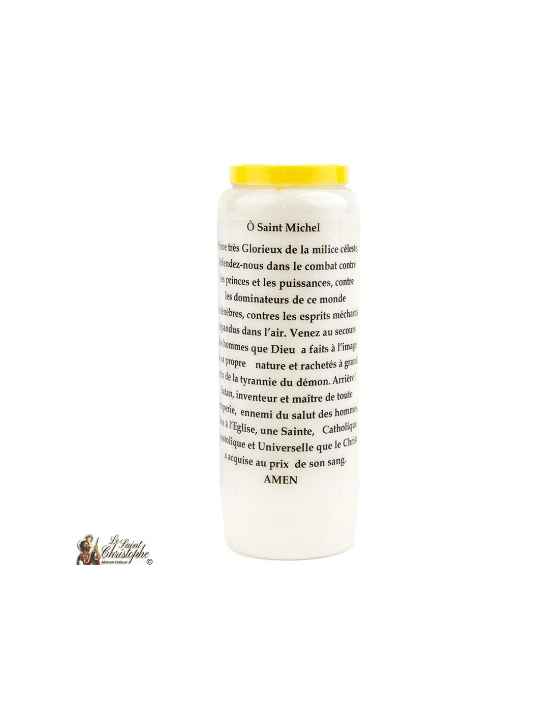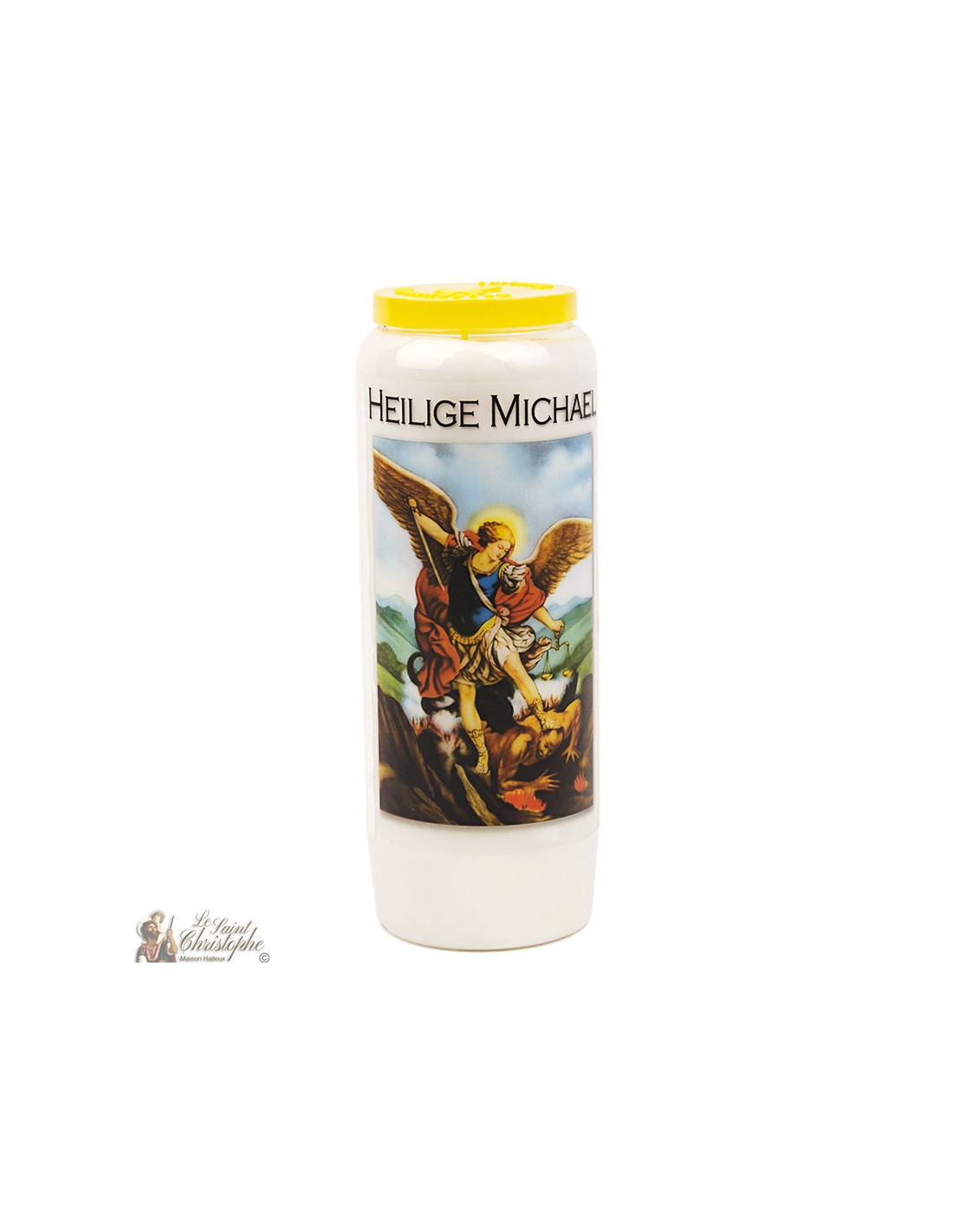 Vela de novena vegetal con imagen de San Miguel y aroma de salvia. Una combinación perfecta para la purificación.