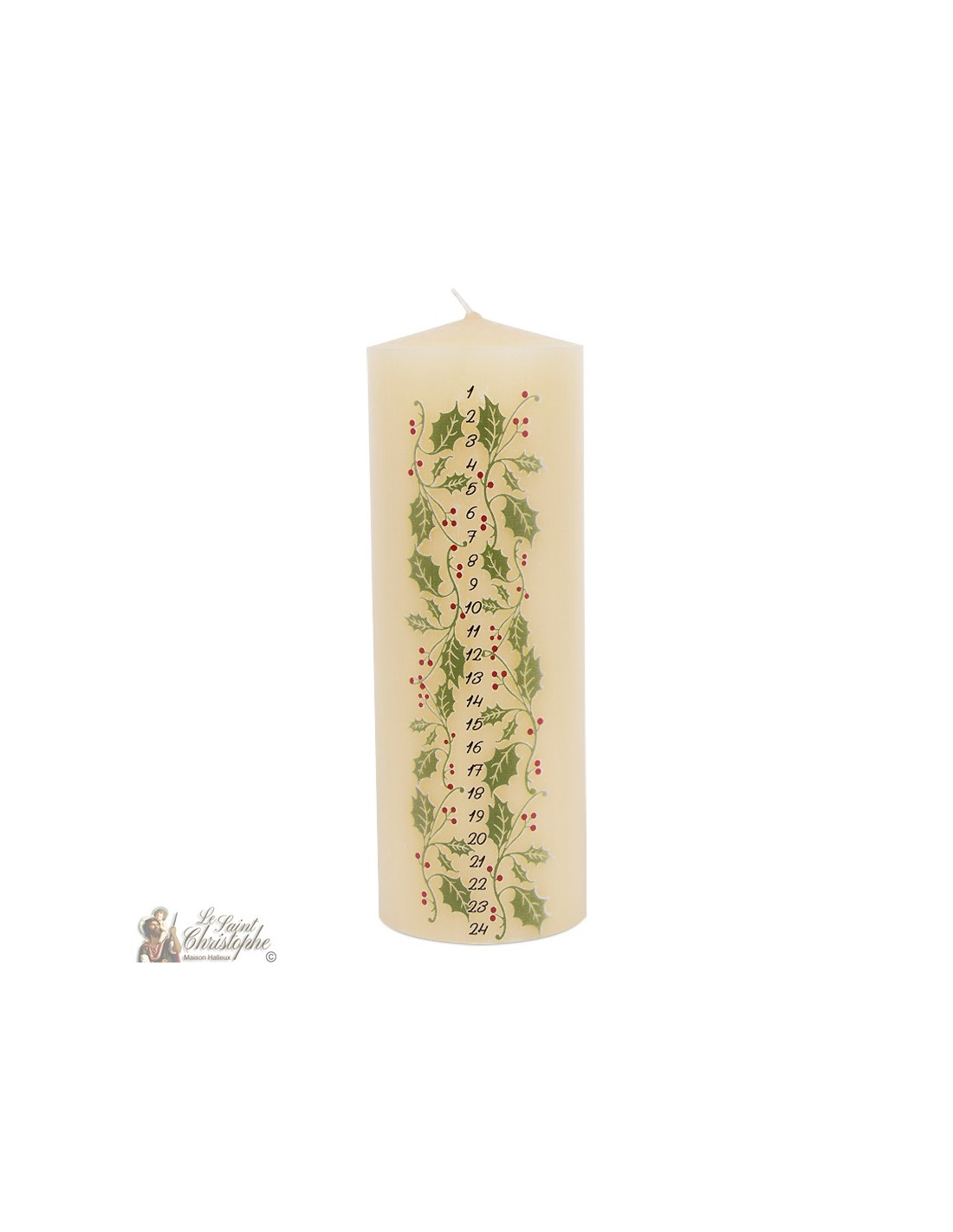Vela de Adviento decorativa – Hojas de acebo y bayas rojas