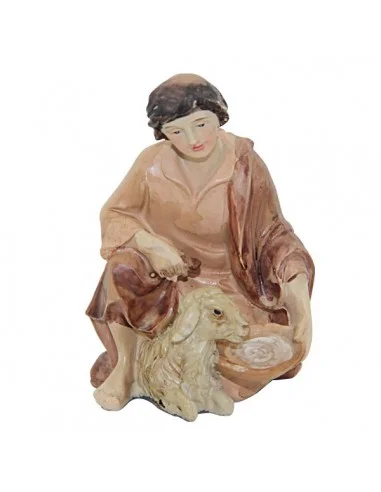 Berger assis avec mouton – Figurine pour crèche ou village de Noël (12 cm)