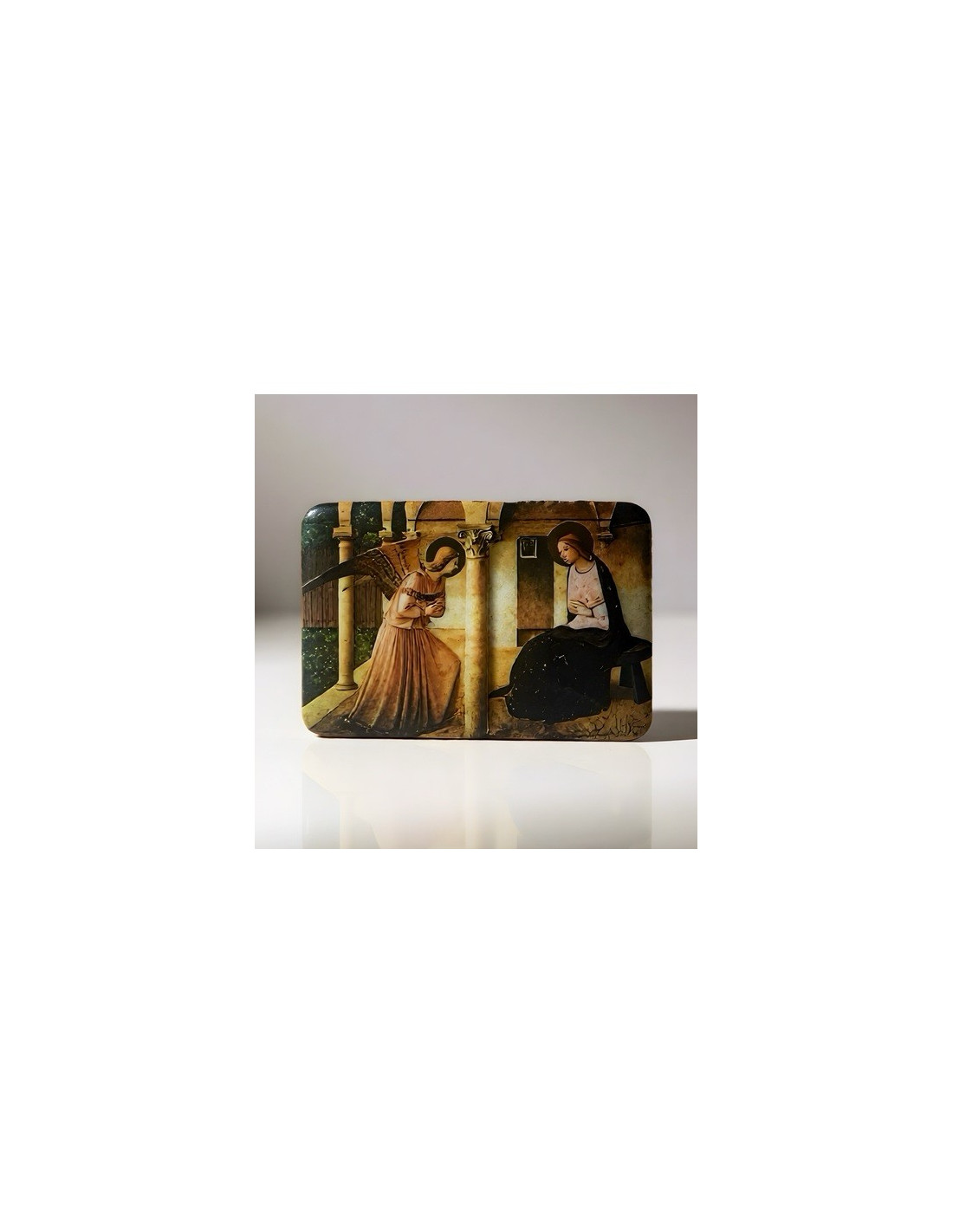 Ce magnet magnifiquement illustré représente la scène de l’Annonciation : l’ange Gabriel annonçant à la Vierge Marie la venue du Christ. Inspirée d’un chef-d’œuvre de Fra Angelico, cette image allie beauté artistique et profondeur spirituelle.
