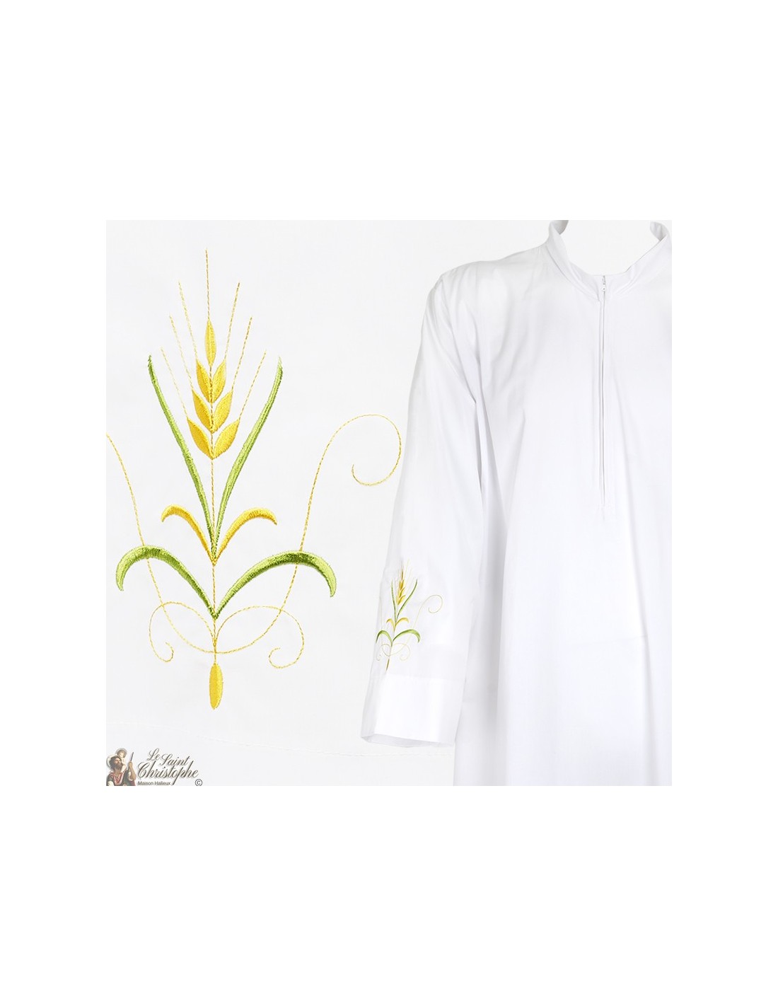 Aube Blanche brodée brodée avec des calices et raisins - coton et polyester