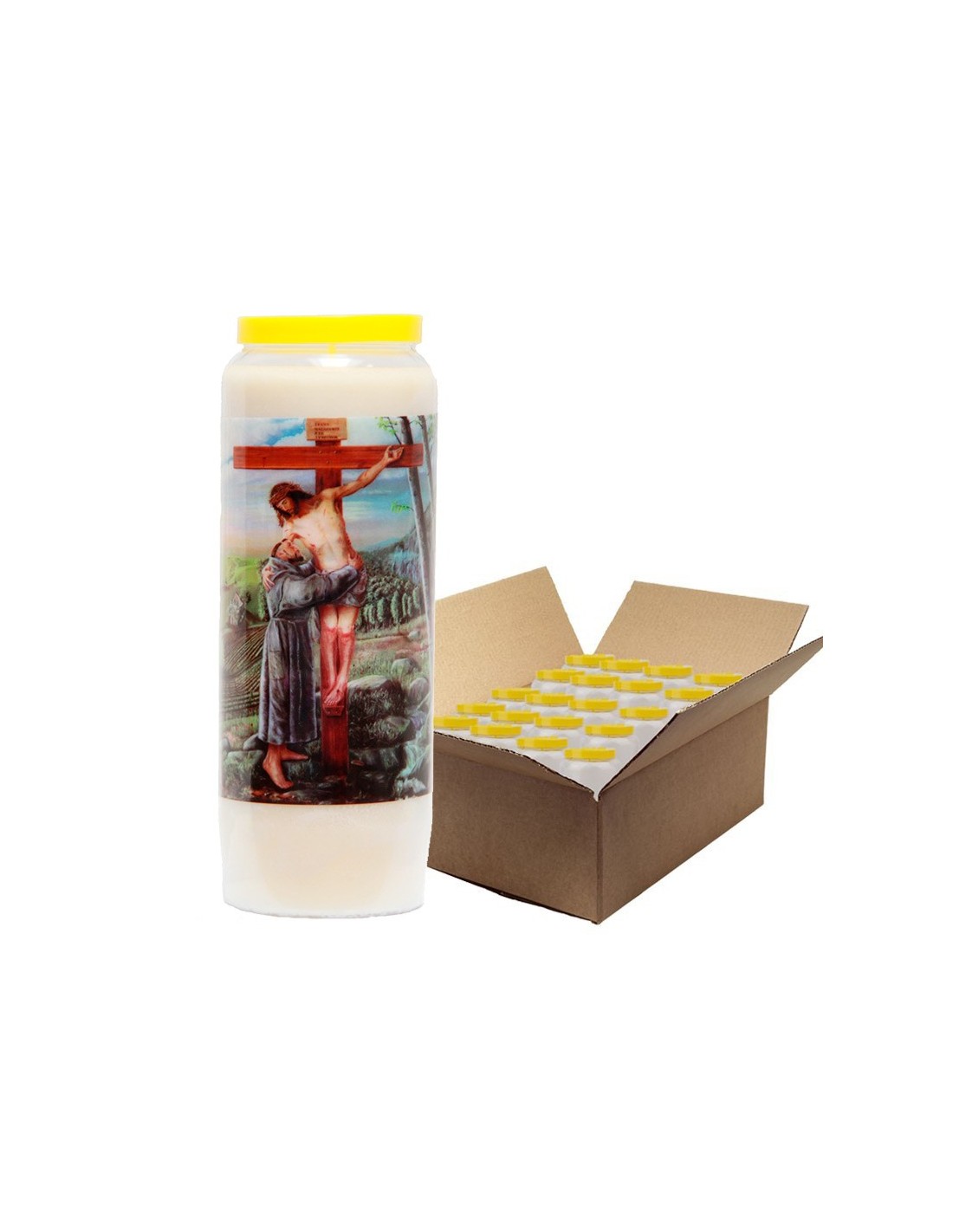 Bougie de neuvaine au Christ sur la Croix multilingue - carton 20 pièces