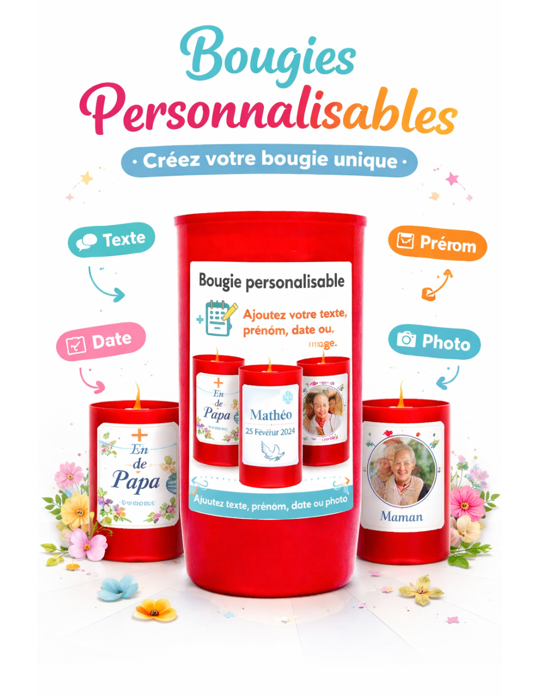 • Personnalisation : texte, prénom, image ou date