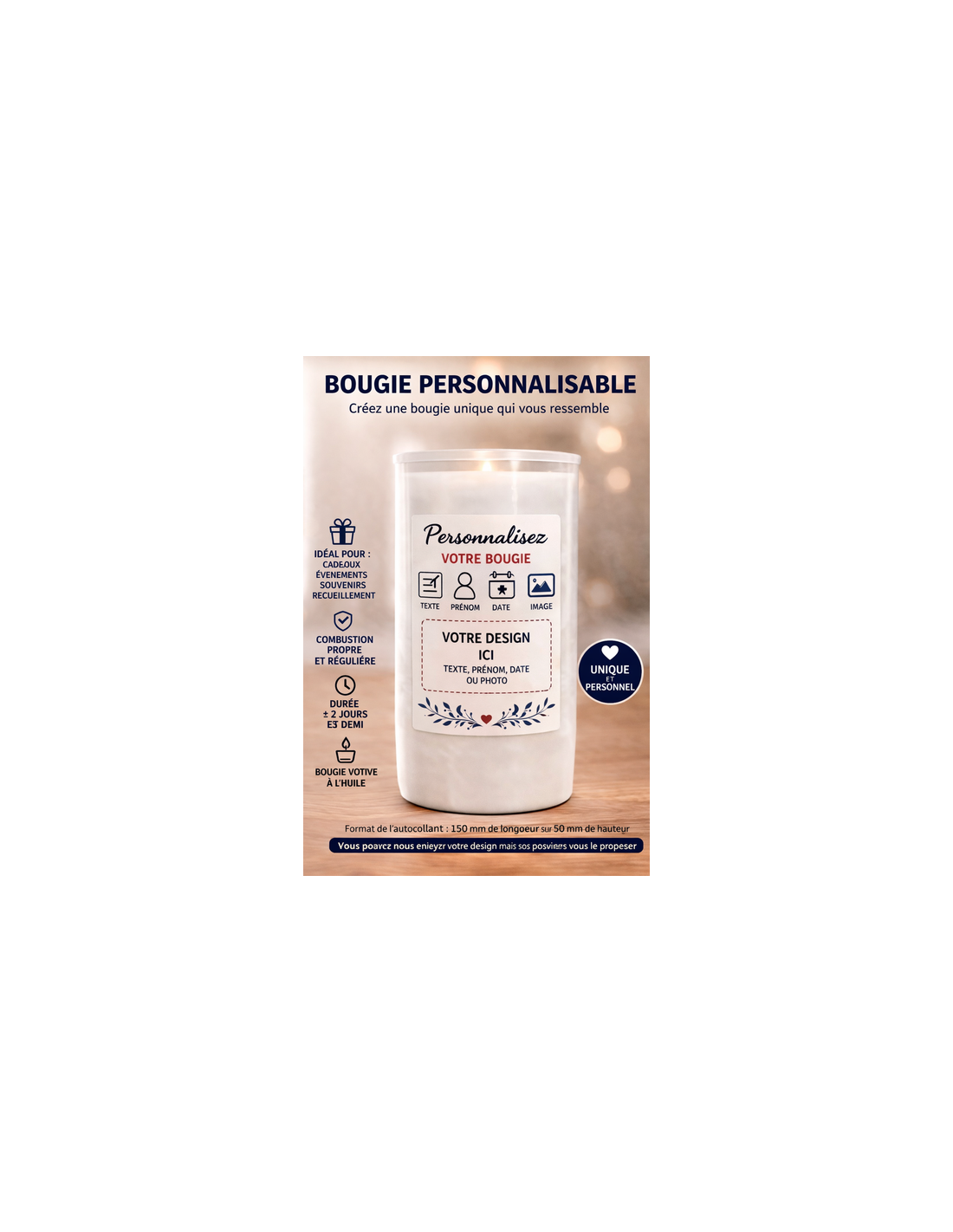 - Type : Bougie votive à l’huile personnalisable