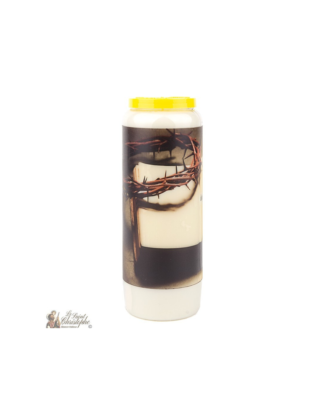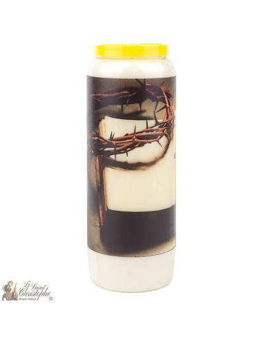 Bougie de neuvaine à l'image des 12 articles de foi avec prière au dos.