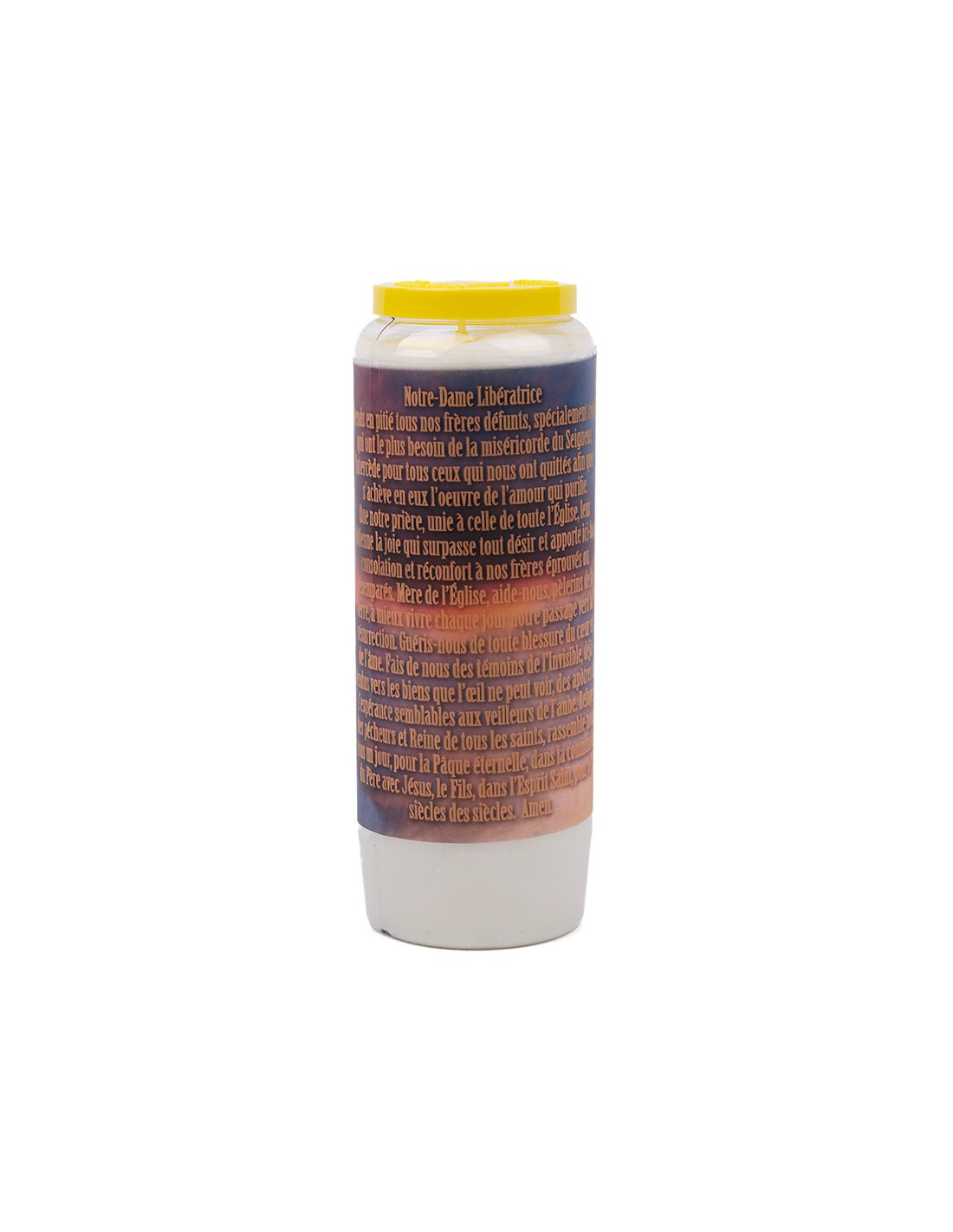 Bougie de neuvaine à l'image de Notre Dame de Montligeon et prière au dos.