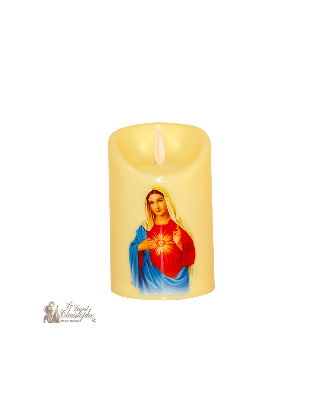 Cette bougie est à l'effigie du Sacré Cœur de Marie.