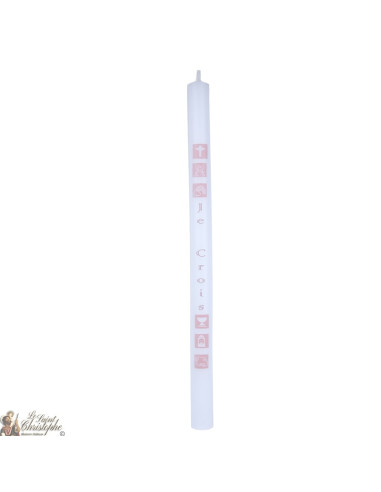 Bougie de communion couleur blanche diamètre:2.5cm Hauteur:40 cm Poids:176gr code:08845-ccr-1