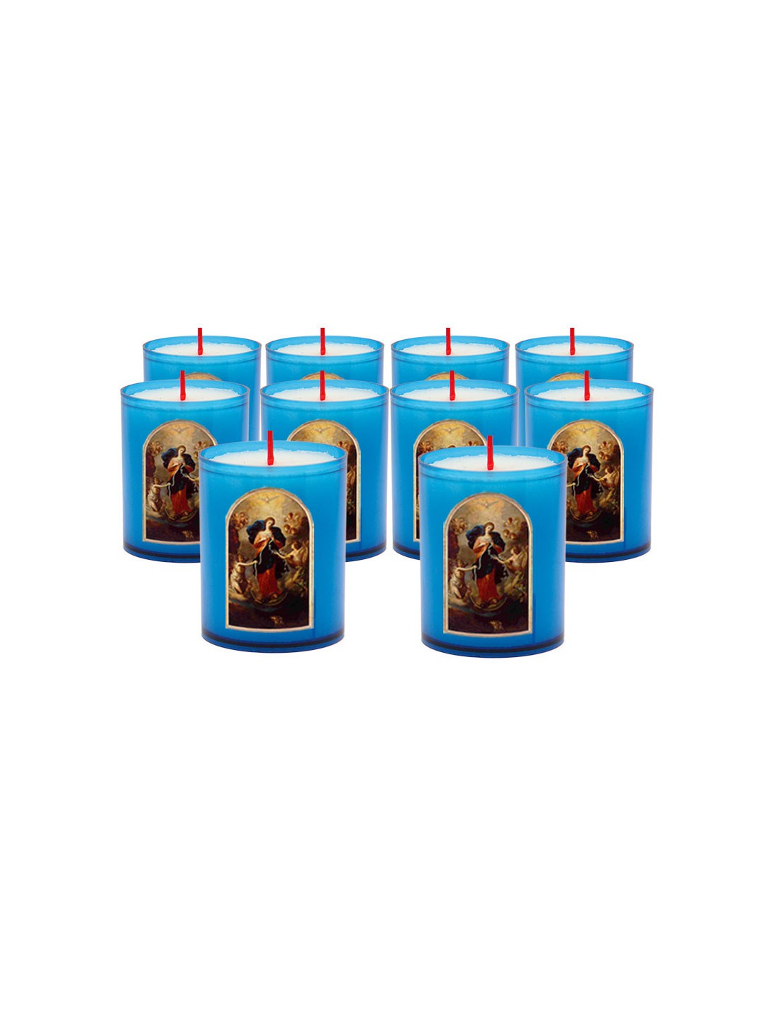 Les bougies veilleuses servent à exprimer un vœu ou en soutien à une prière. Avec l'image de Marie qui défait les noeuds, on les recommande pour demander de l'aide lors de situations difficiles, qui semblent inextricables.
