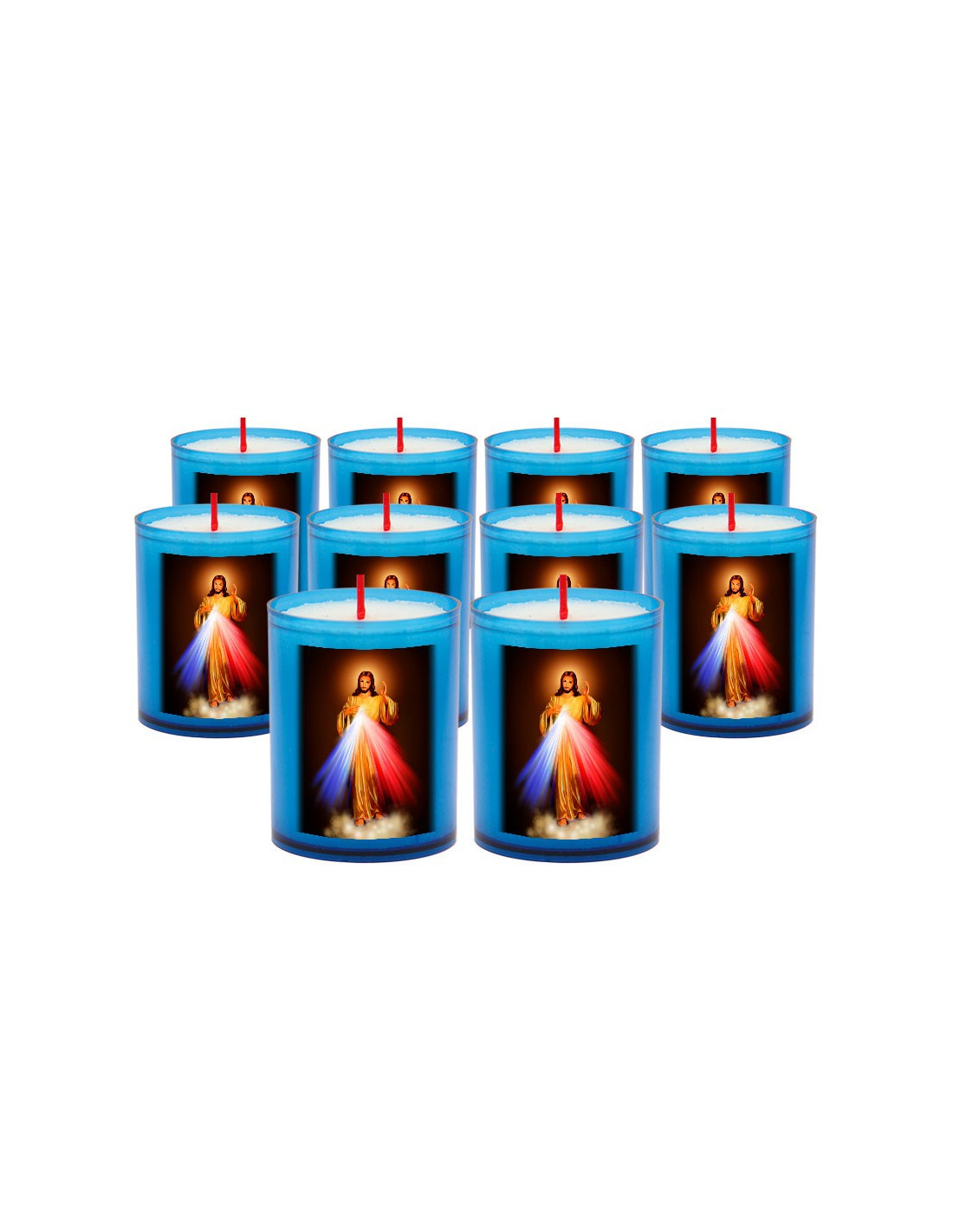 Bougies Veilleuses bleues au Christ Miséricordieux - 10 pièces