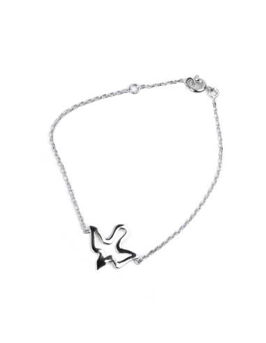Ce bracelet fin et chic est un accessoire délicat qui peut se porter au quotidien. Le pendentif est une colombe, tracée par sa silhouette, symbole de Paix et d'Amour. Le bracelet est réglable grâce aux deux points d'attache possibles.