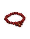 Ce bracelet est fait à partir de perles de bois d'un rouge flamboyant et profond. Il est orné d'un pendentif en forme de croix, gravé du signe PAX. Grâce à cela, le bracelet peut aussi servir de dizaine de chapelet pour les personnes pratiquantes. Le sigle est réalisé en doré, un très beau contraste avec le rouge. Comme son nom l'indique, le sigle PAX est un symbole de paix.
