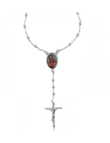 Ce bracelet en métal argenté est fin et délicat. Il est orné d'une médaille à l'effigie du Sacré Cœur de Marie, un symbole d'Amour inconditionnel, et de la croix chrétienne avec la figure de Jésus Christ. Les petits points parsemés sur le bracelet permettent de s'en servir comme dizaine de chapelet, aussi appelé dizainier, et accompagner vos prières à tout moment.