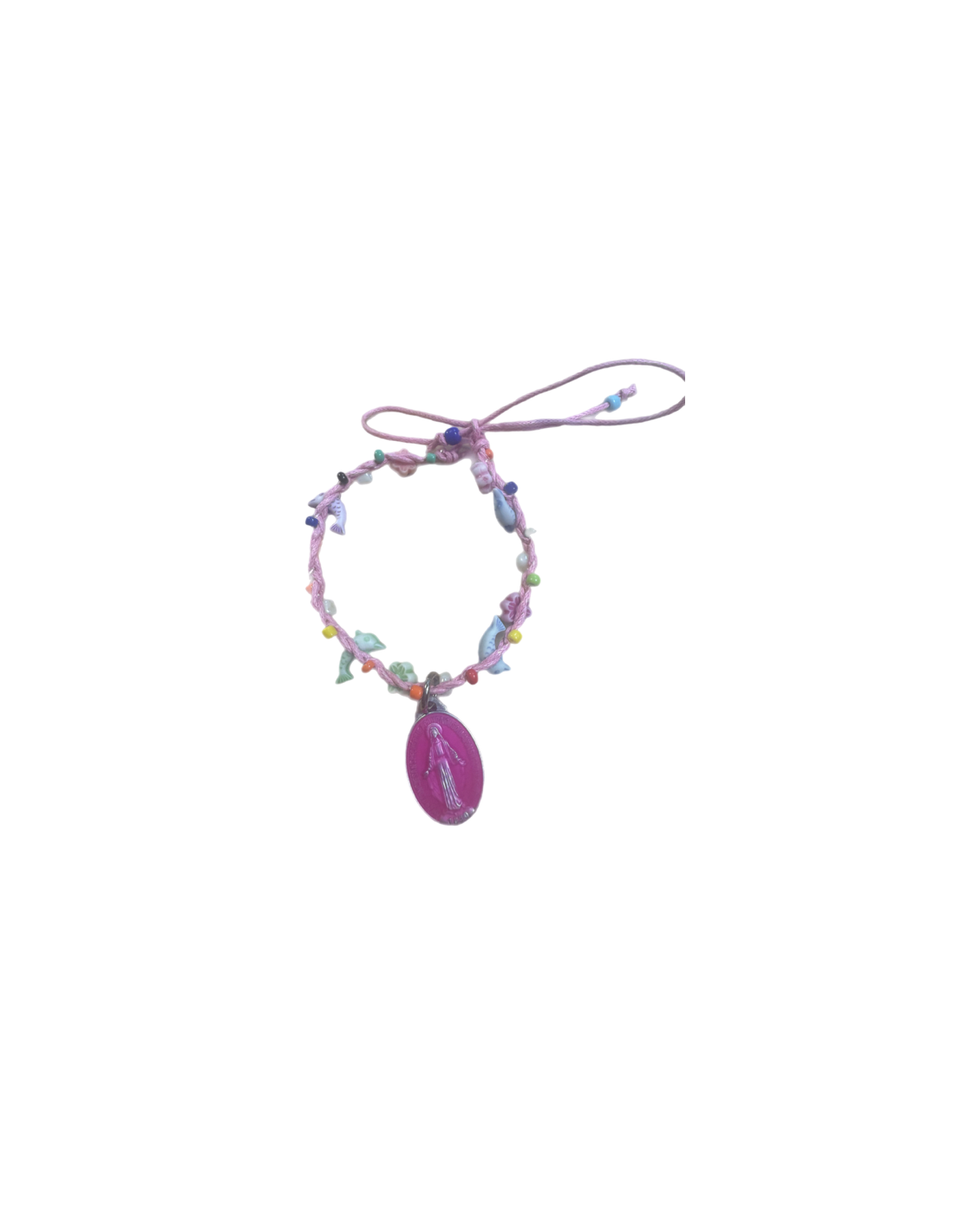 Bracelet tressé Vierge Miraculeuse – fleurs & dauphins pour enfants