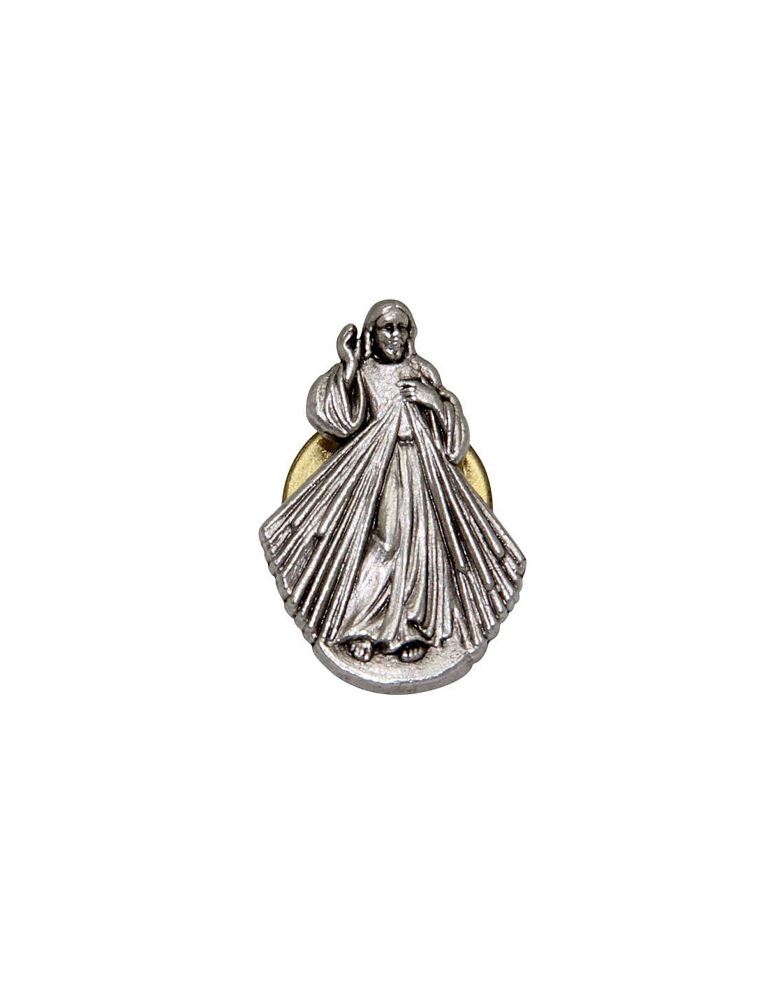 Pin's du Christ Miséricordieux en métal argenté. Cette broche fantaisie est un beau symbole de la foi chrétienne en un bijou élégant.