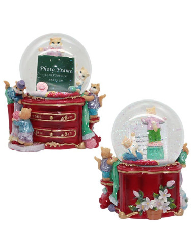 Boule de neige avec musique incrustée d'un cadre photo avec petits chats