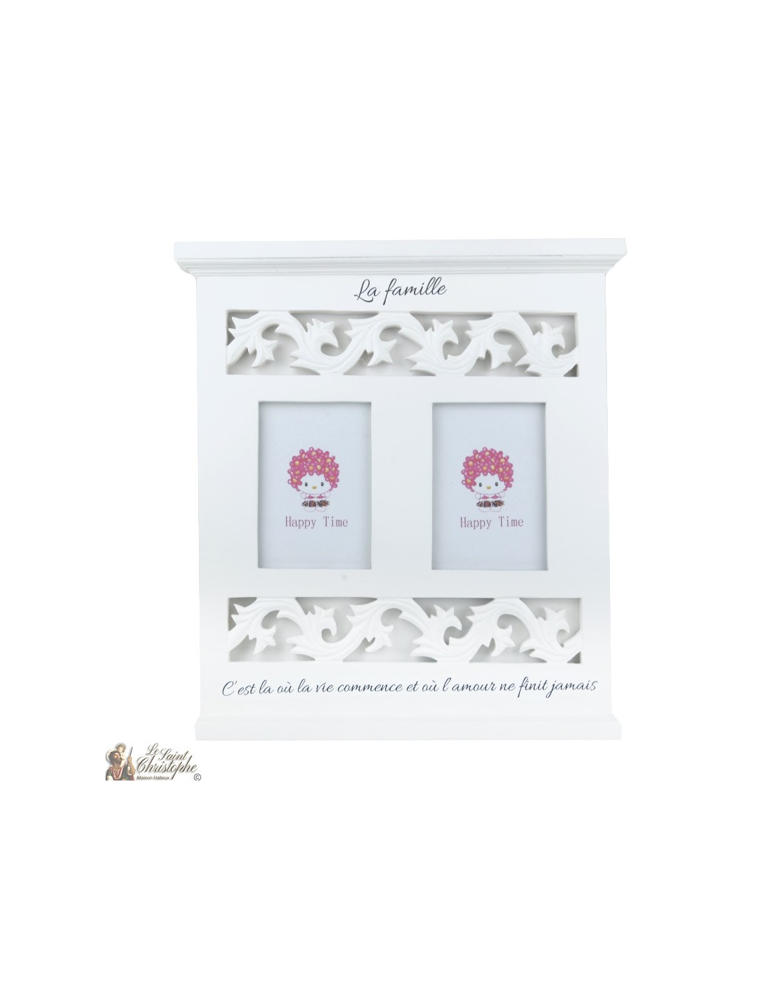 Cadre pour deux photos en bois blanc pour la famille