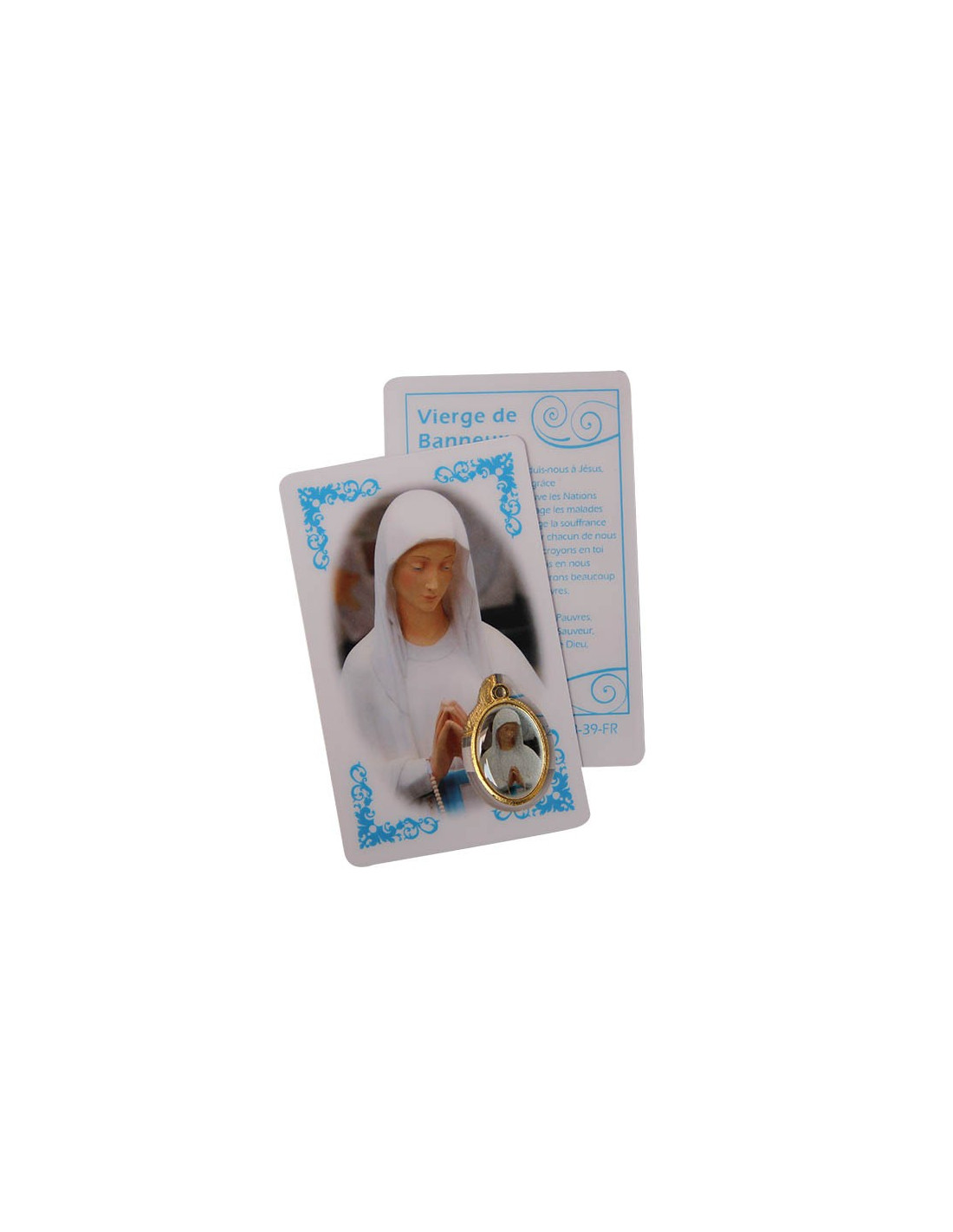 Cette carte-médaille met à l'honneur Notre Dame des Pauvres. Pouvant se glisser dans une poche ou un portefeuille, la carte plastifiée est imprimée d'une photo de la Vierge Marie de Banneux Notre-Dame et d'une prière en son nom. Elle est ornée d'une médaille de la Vierge des Pauvres, que vous pouvez découper pour la porter en pendentif ou la laisser avec la carte comme objet souvenir.