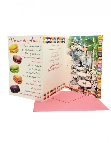 Carte d'anniversaire 3 volets "Un an de plus" - Macarons
