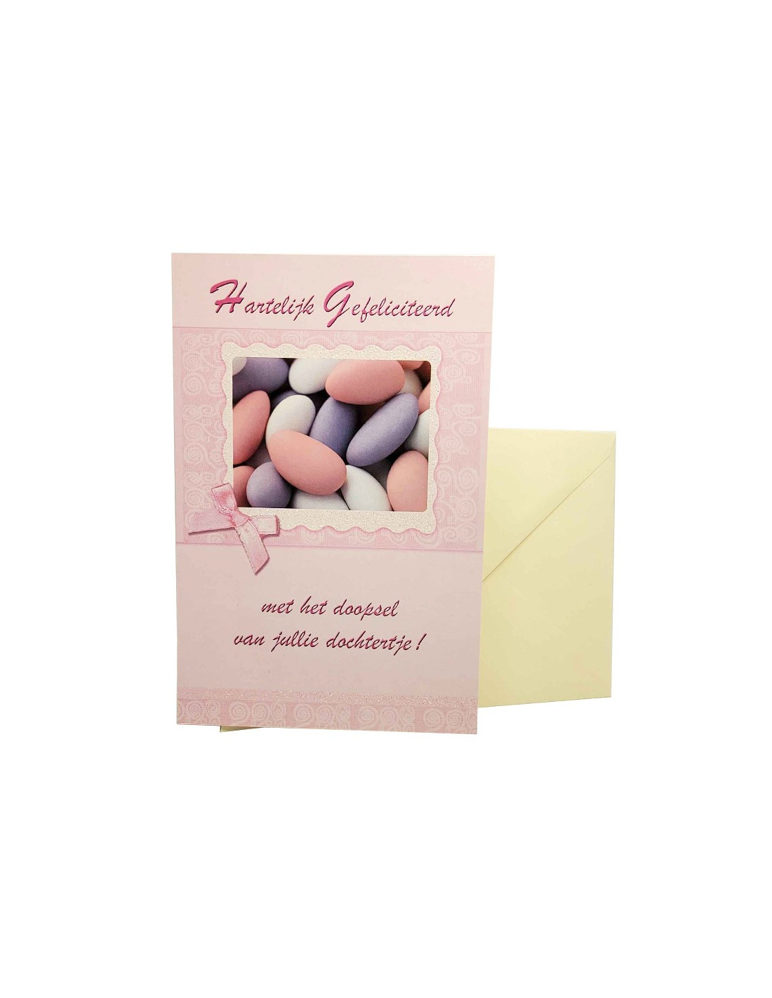 Carte de Félicitations Baptême Fille - Dragées et paillettes