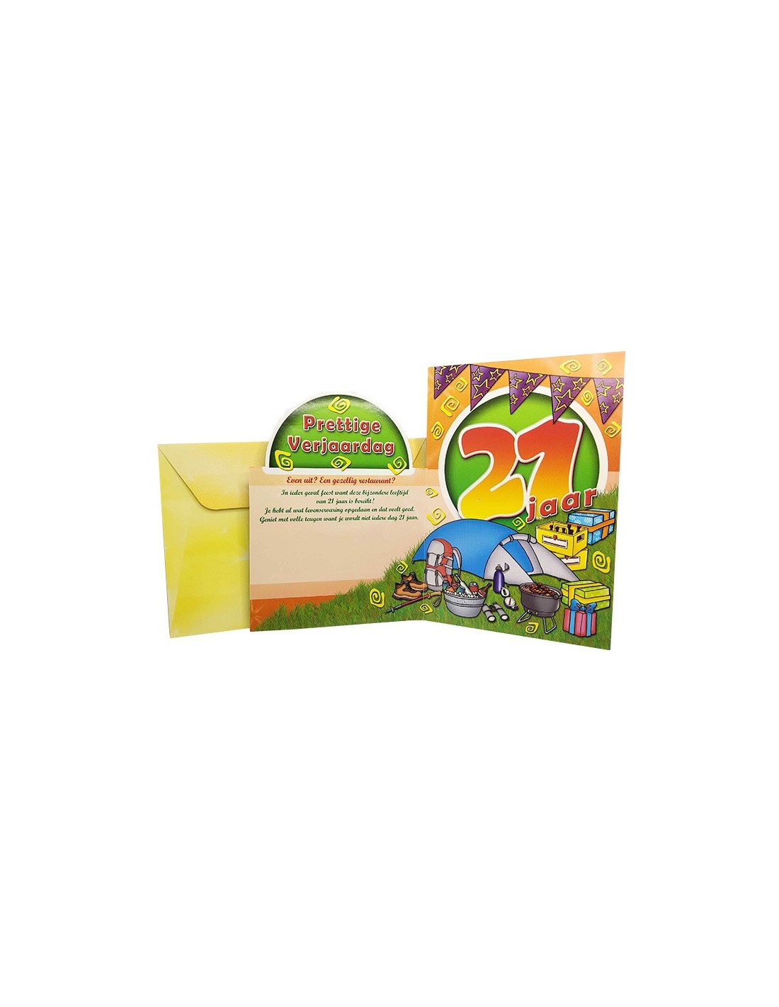 Jeune adulte entrant dans la vie active, c'est une étape à fêter. Alors pour les 21 ans de la personne que vous aimez, envoyez-lui cette carte d'anniversaire ! Célébrez cet événement avec un style rétro grâce à cette carte de voeux ornée de paillettes et d'un effet brillant. La découpe de la carte est originale, mettant en avant le nombre d'années fêtées. Accompagnée d'un petit texte attentionné à l'intérieur, vous y avez également la place pour quelques mots plus personnels. La carte est fournie avec une enveloppe assortie. Le texte est uniquement en néerlandais.