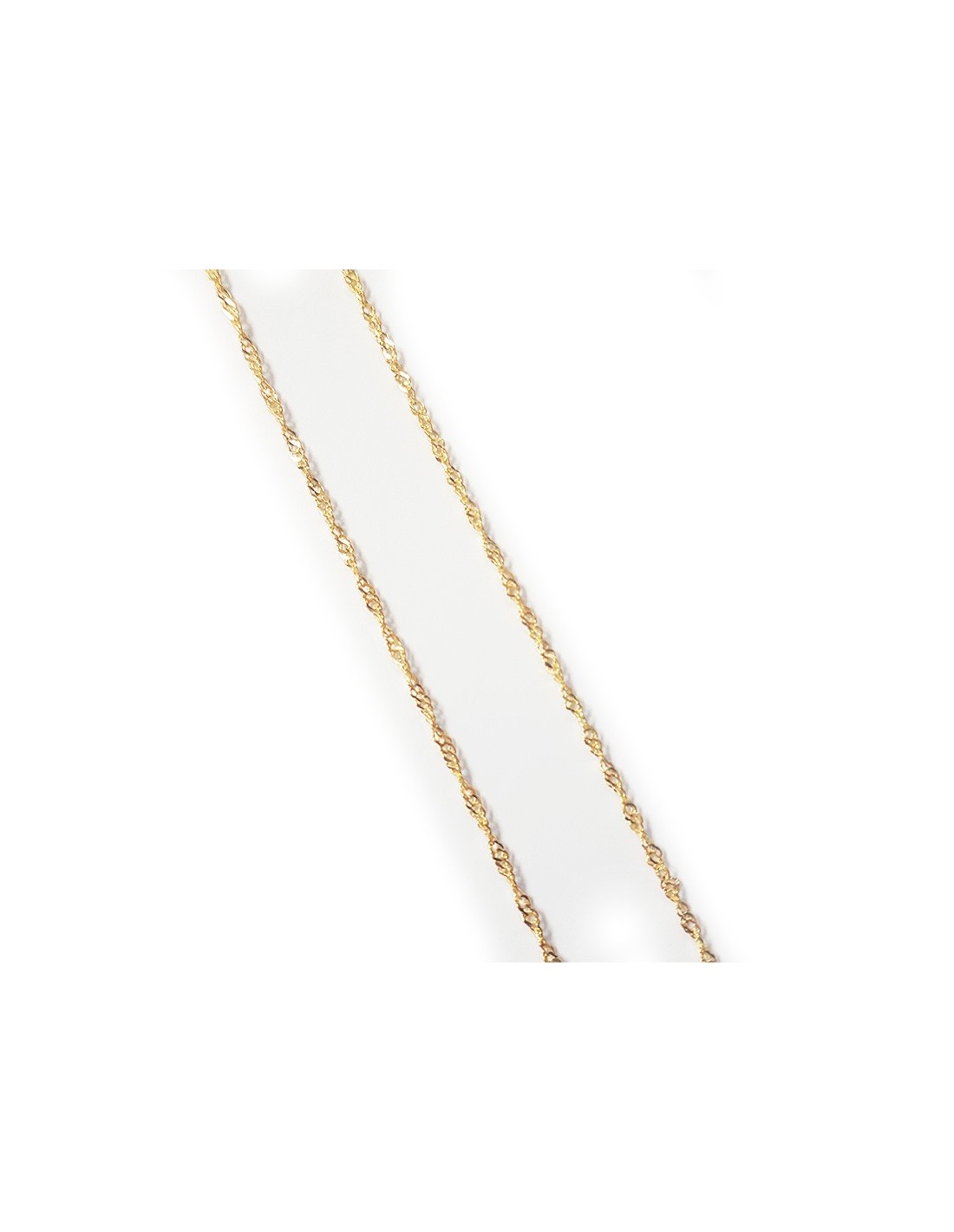 Chaîne Singapour de 45 cm en argent 925 plaqué or, reconnaissable à ses maillons entremêlés délicatement. Très confortable, cette chaîne est sophistiquée et chic, se portant seule ou se mariant harmonieusement avec un pendentif.