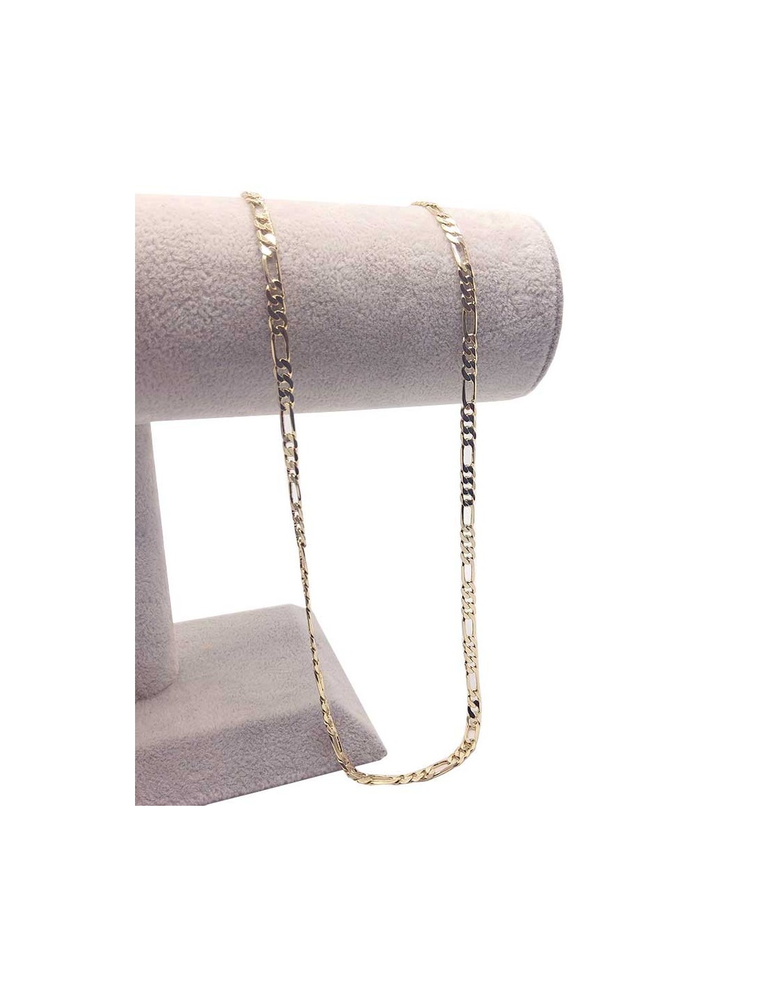 Chaîne figaro de 50 cm en cuivre plaqué or 14k. Les chaînes figaro se reconnaissent à leurs maillons de tailles variables, une succession d'un maillon long pour trois maillons courts. Un design asymétrique pour un style moderne.