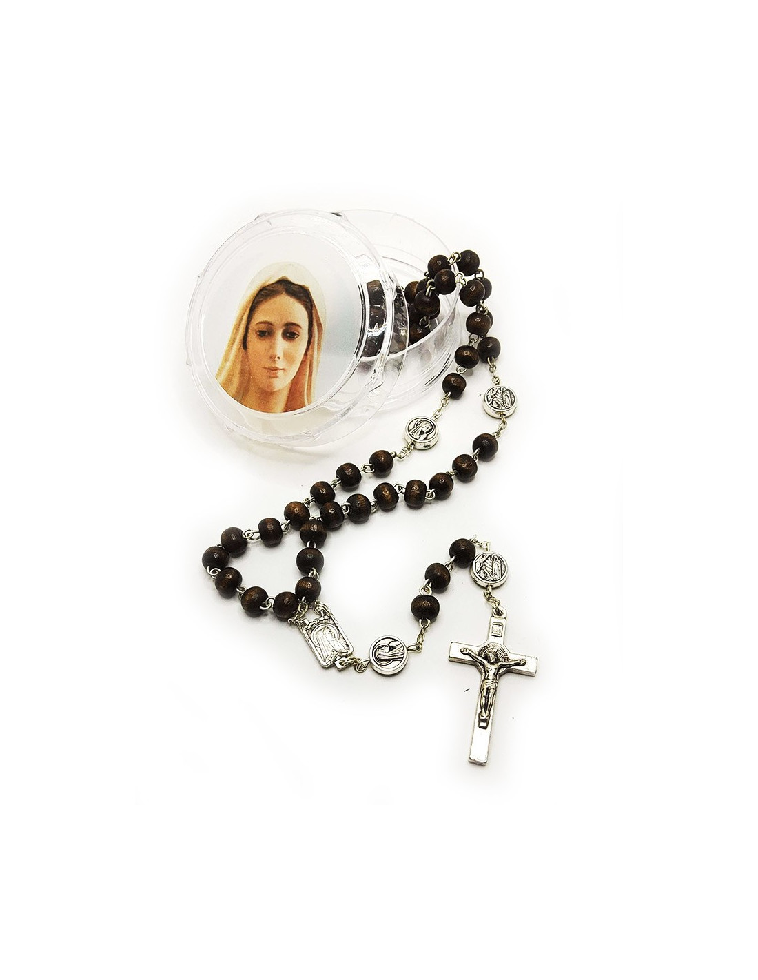 Chapelet apparition Lourdes bois brun avec mousqueton
