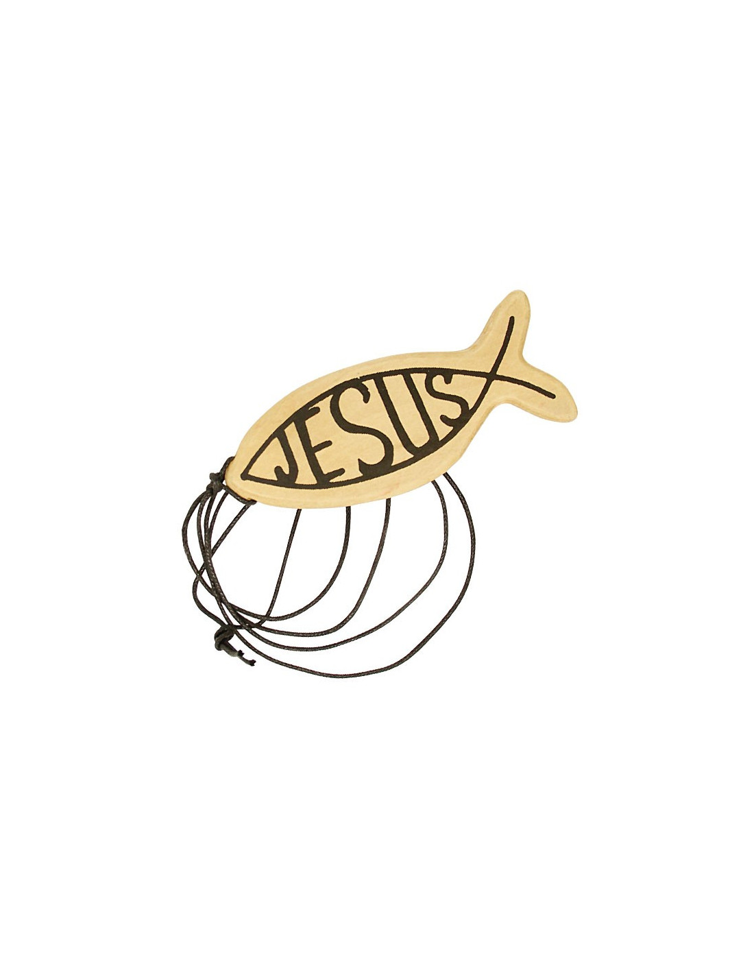 Poisson Jésus bois naturel avec cordon - déstockage massif