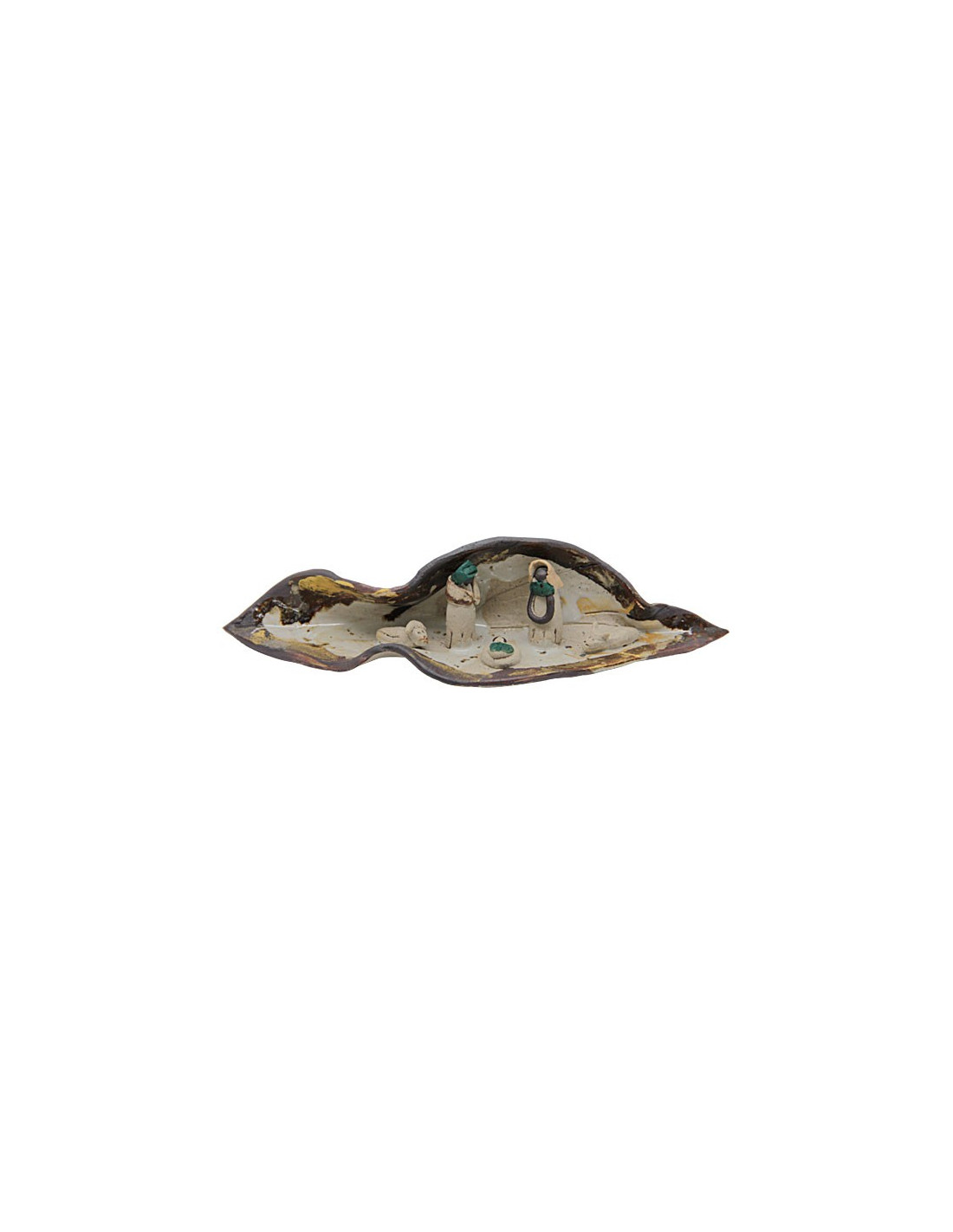 Cette crèche de Noël en forme de feuille est une décoration originale et unique ! Issue de l'artisanat du Venezuela, elle est réalisée à la main en terre cuite. Chaque feuille est un peu différente grâce à la patte artistique de l'artisan. Les personnages de la crèche représentent Saint Joseph, la Vierge Marie, l'Enfant Jésus Christ, l'âne et le boeuf.