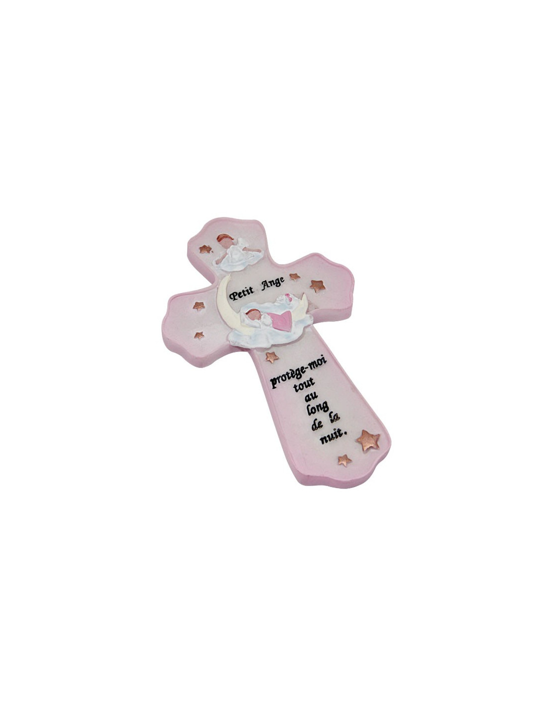 Croix en céramique blanche et bleue avec ange protecteur – 8,5 x 13,5 cm