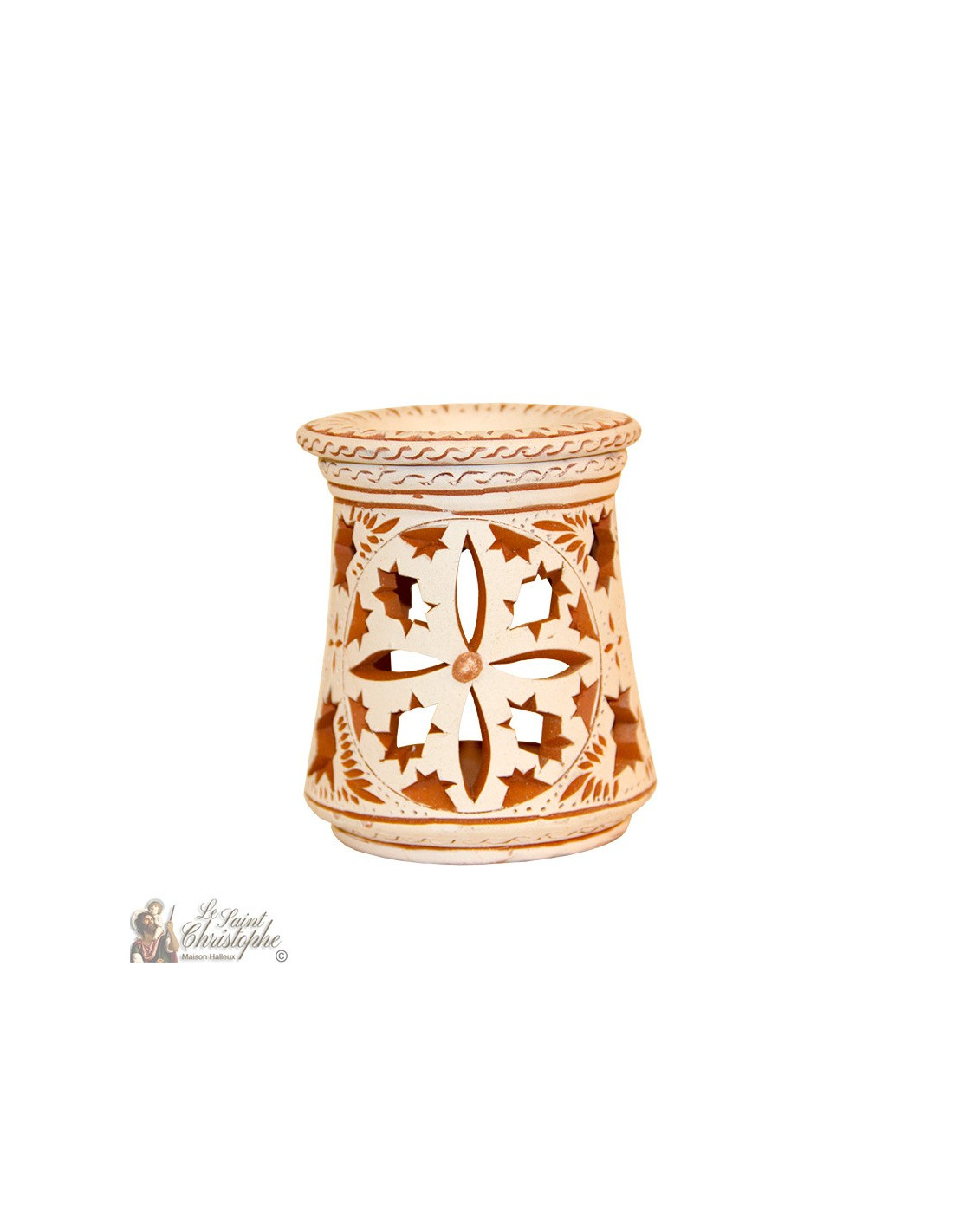 Brûleur d'huile photophore en terre cuite - 3 rosaces